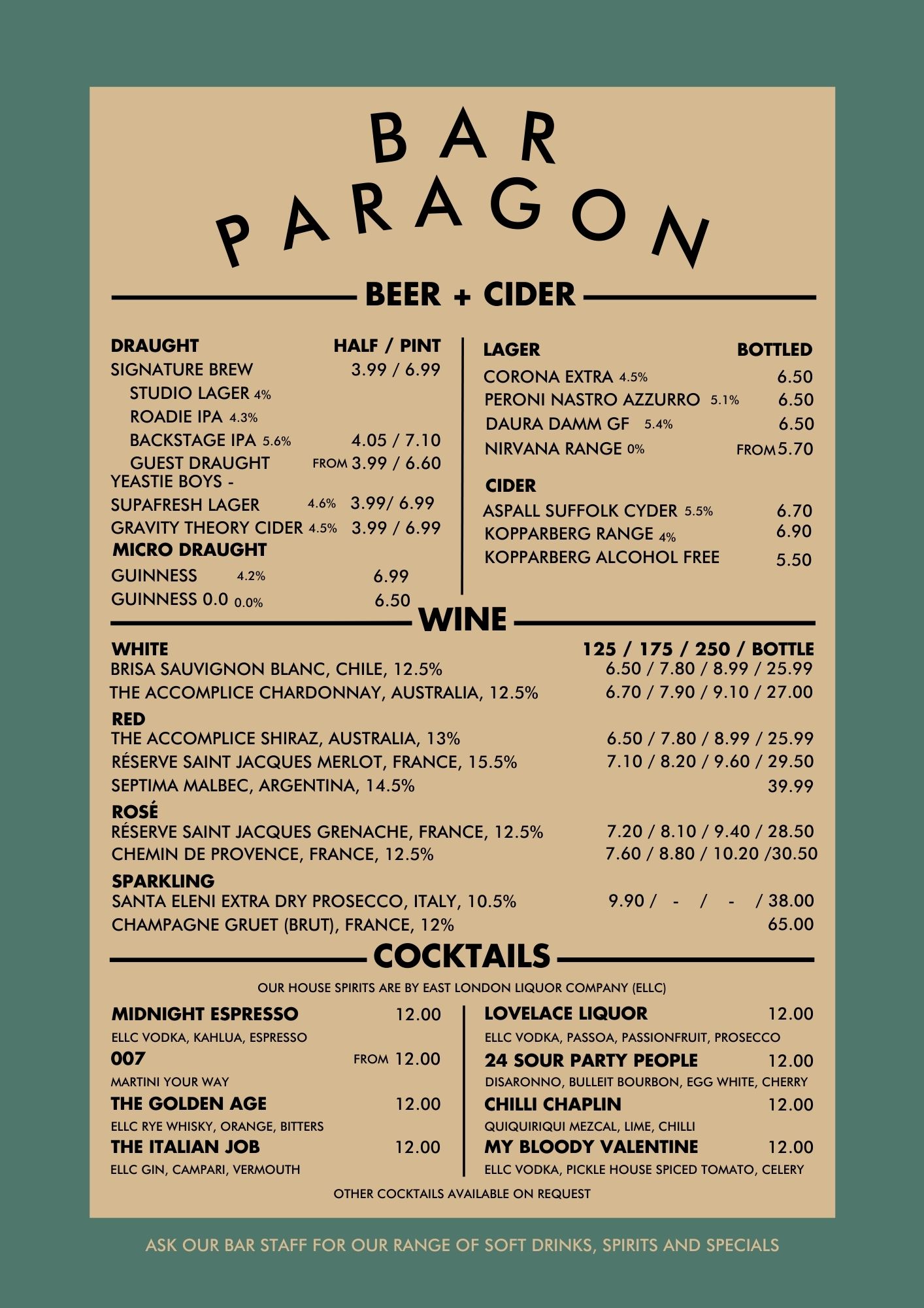 Named after the Paragon Theatre of Varieties, the name of the site from 1885, our bar is the heart of Genesis. With themed cocktails, a great selection of beer from Signature Brew, as well as a wide selection of non-alcoholic beverages, we have something for everyone.